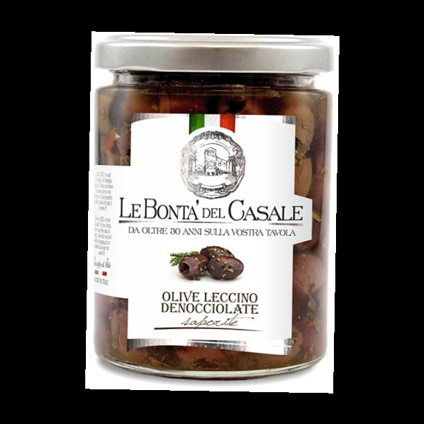 Черные оливки сорта «Леччино», собраны вручную и замаринованы без косточек в качественном растительном масле с добавлением зелени и специй.Это пожалуй самый узнаваемый сорт оливок среди потребителей. Исторически, родиной данного сорта считается Тоскана, однако оливки сорта«Леччино» распространены по всей Италии, т.к. считаются одними из самых выносливых и легко адаптируемых к условиям окружающей среды. Плоды среднего размера с деликатным вкусом.